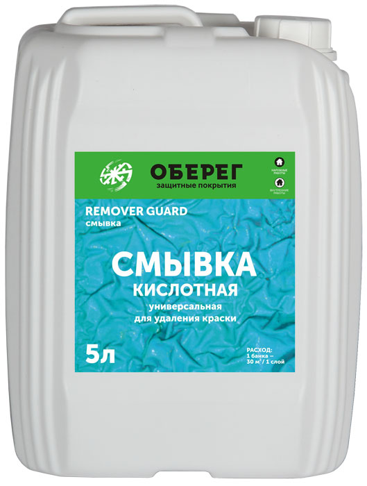 Смывка ОБЕРЕГ RemoverGuard - на основе органических растворителей. Смывка применяется для удаления масленых, алкидных, поливиниловых, эпоксидных, полиуретановых и полиэфирных покрытий с металлических, бетонных и кирпичных поверхностей.